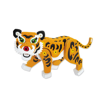 连接EVA泡沫件和塑料接件来组装动物模型,栖息地场景板;