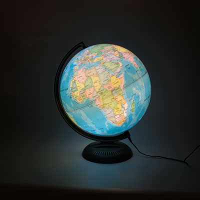 --- 32cm Illuminated World Globe with Plastic Stand, equipped with CE 220V Adaptor